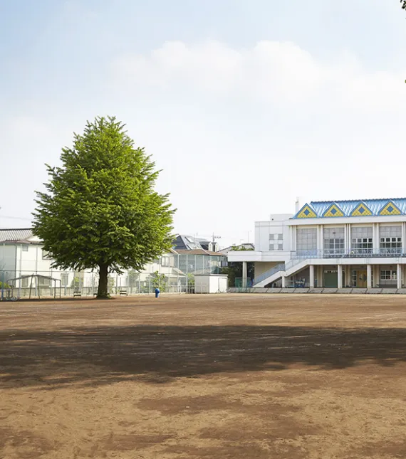 トンネル山グラウンドは、1963年に完成した歴史ある運動場です。1965年、第49回卒業生の卒業記念品として築かれた“トンネル山”にちなんで、その名がつけられました。一方、ポプラグラウンドは、1984年に完成した土のグラウンドです。名の由来であるポプラの木と、大きなイチョウの木が子どもたちを見守っています。