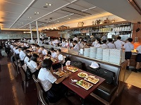 併せて、午前中は、首都圏の食文化を支える新しい中央卸売市場である「豊洲市場」の見学も行っています。昼食は、東京タワーとレインボーブリッジ、高層ビル群が重なり合う、東京らしい絶景を眺めながら、学年の皆でビュッフェを楽しみました。