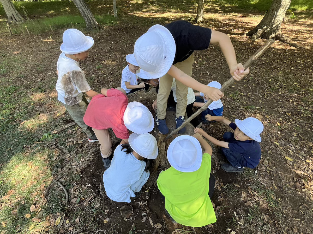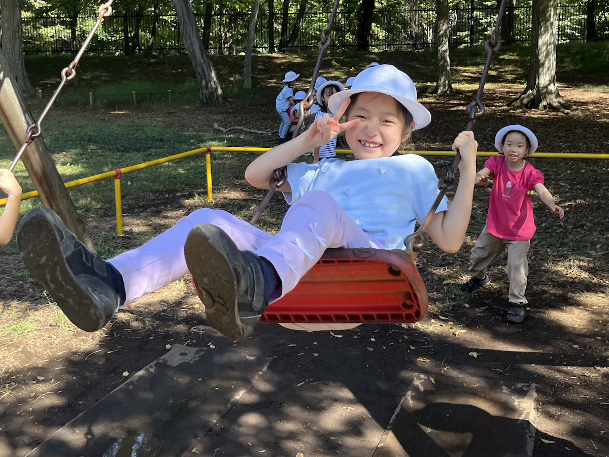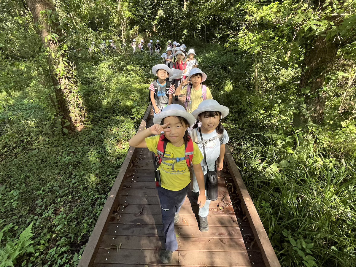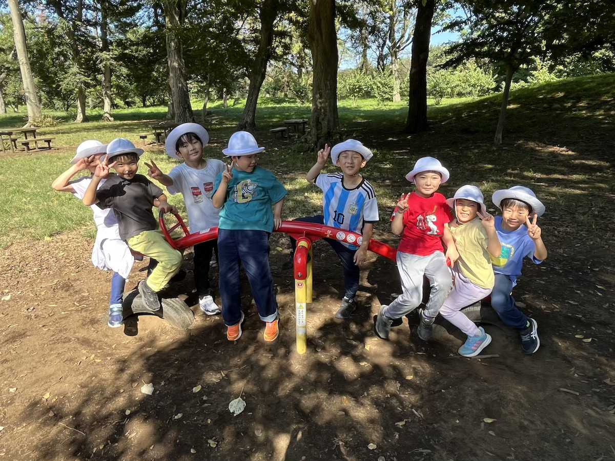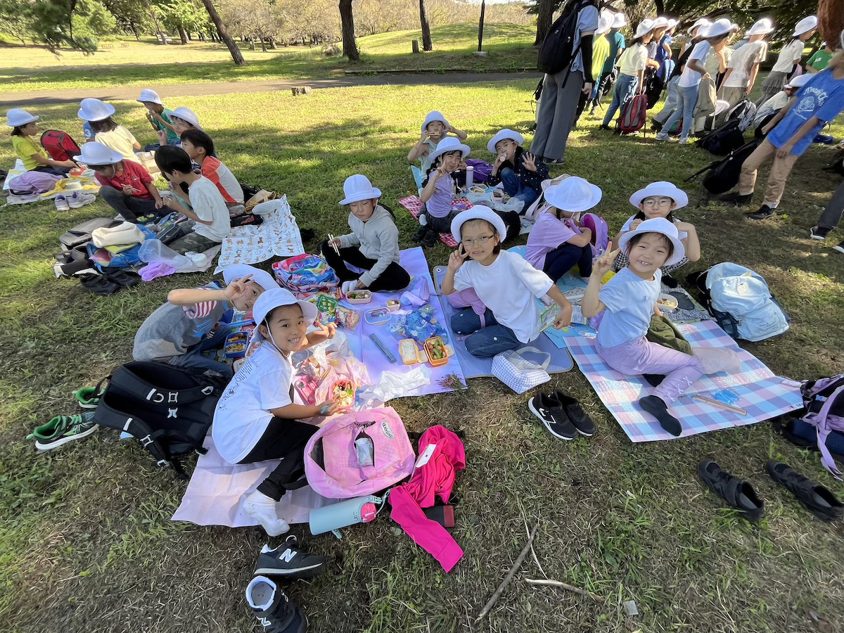 当日は、東小金井駅に集合し、クラスごとに整列して出発しました。公園までの約30分の道のりを、元気いっぱい歩きました。交通ルールを守りしっかりと歩く姿からも、この数か月での成長を感じることができました。公園に到着すると、まずは「自然観察園」へ向かい、秋の植物や花々を観察しました。観察のあとは、広々とした芝生が気持ちいい「わんぱくひろば」にて、自由遊びの時間です。思い思いに秋の自然を全身で楽しみました。普段の学校生活ではなかなか味わえない、開放的な時間となりました。たくさん遊んだあとは、楽しみにしていたお弁当を、みんなで仲よくいただきました。