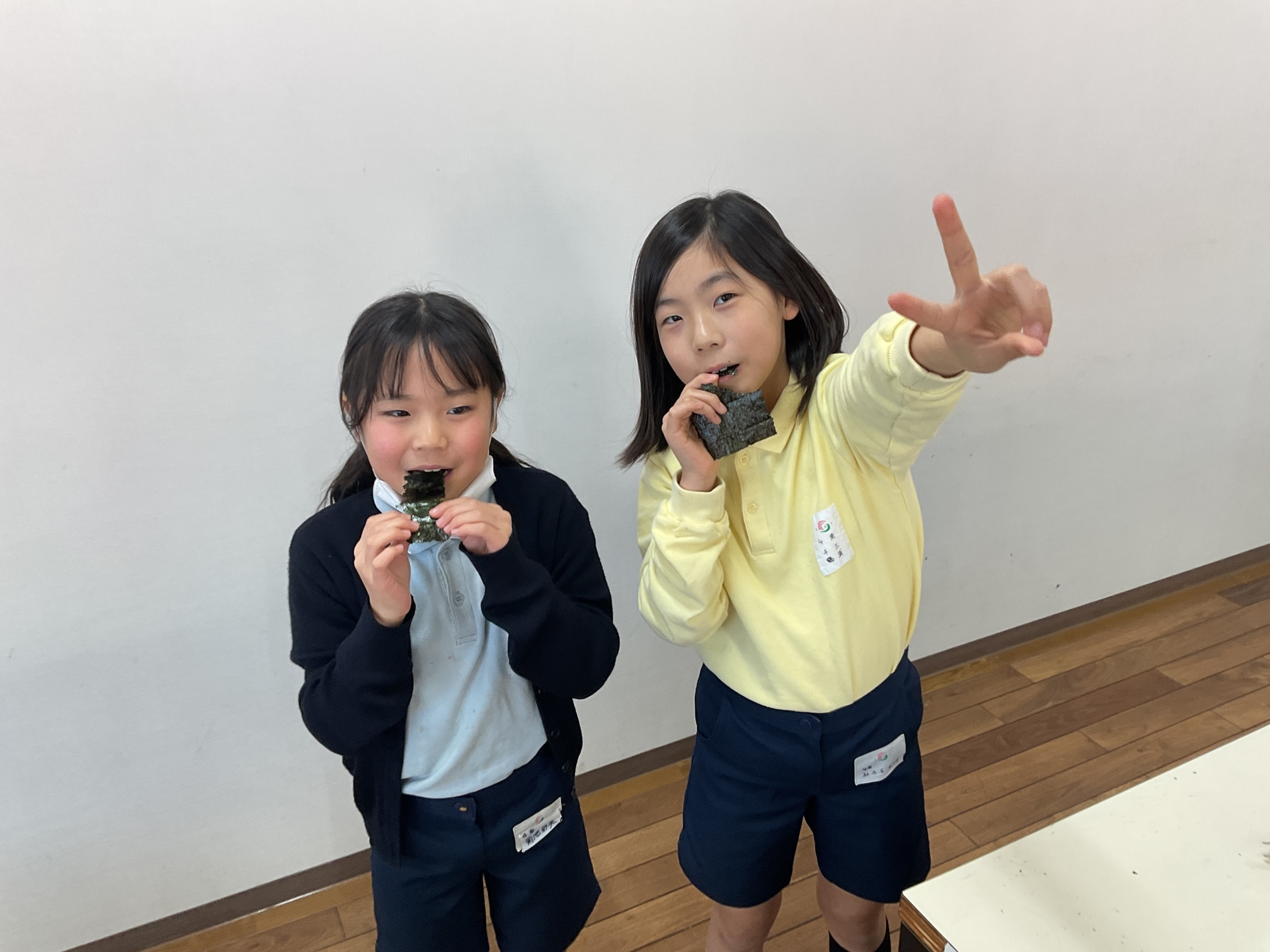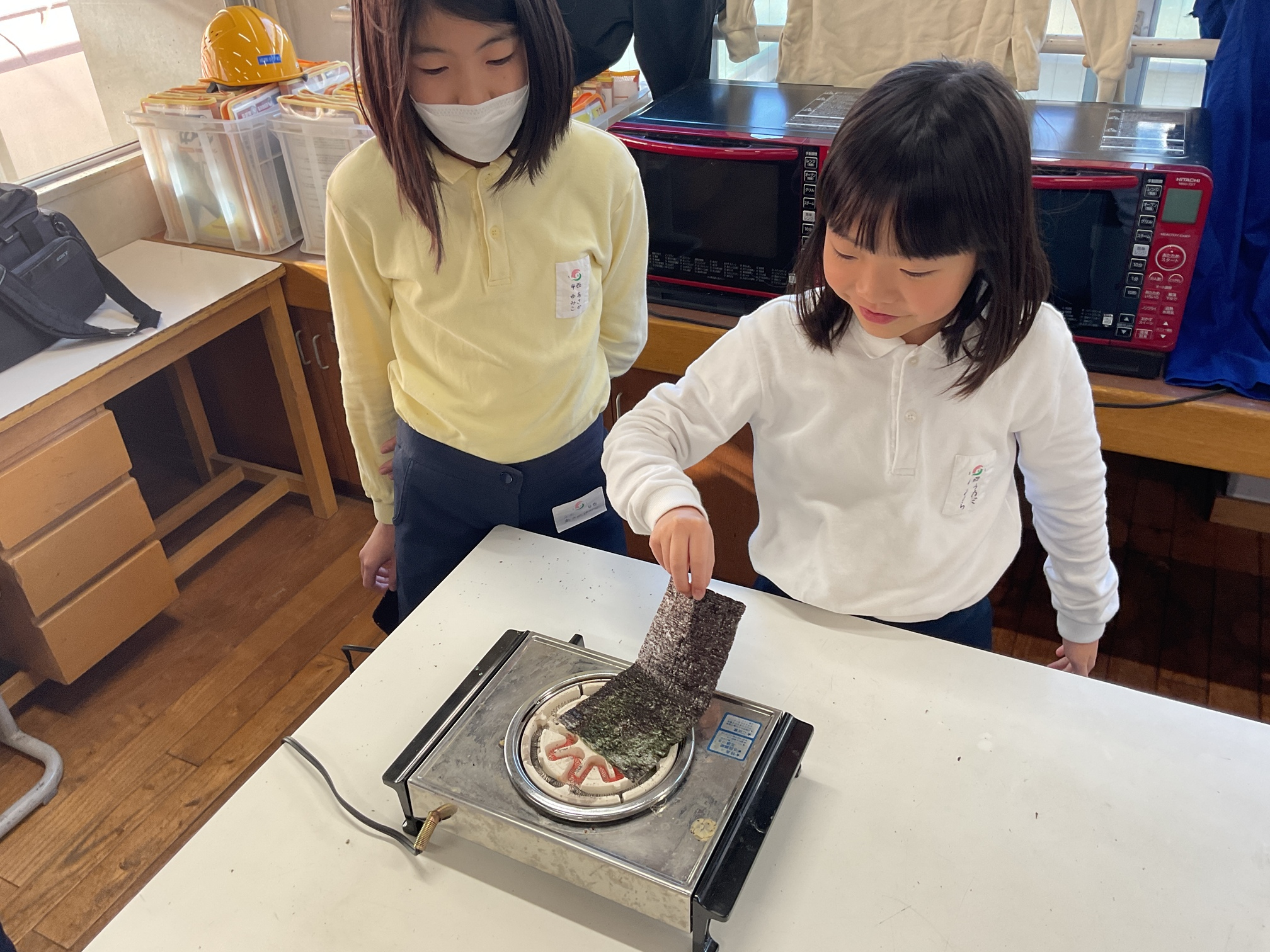 4年生は社会科の学習の一環として、乾海苔を自分で焼いて食べる体験をしました。