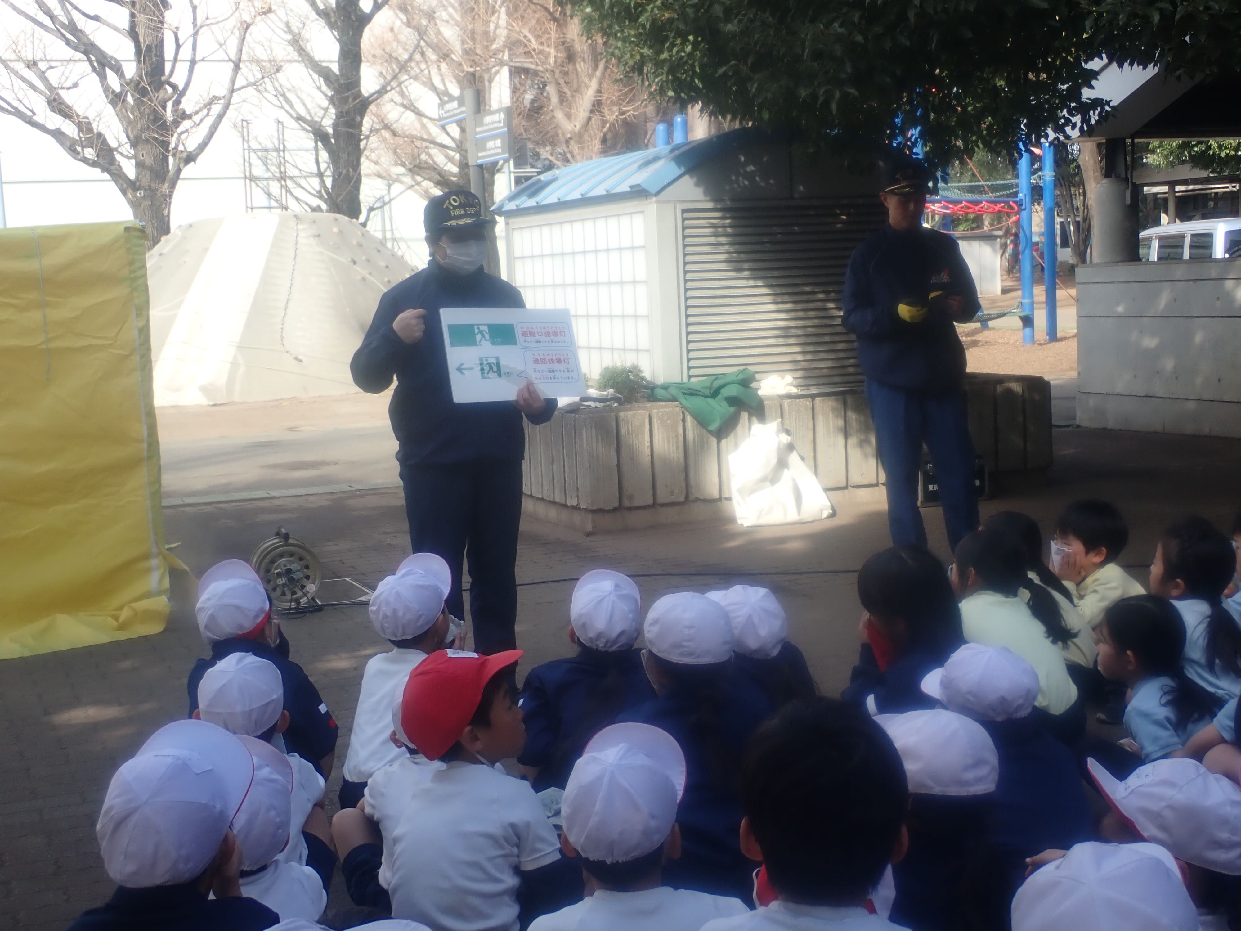 1月19日(月曜日)、今年度4回目の避難訓練を行いました。大地震による避難という想定で、ポプラグラウンドに緊急避難をしました。今回の訓練では、消防署の方々にも来ていただき、職員一同も防災準備と避難を改めて確認しました。