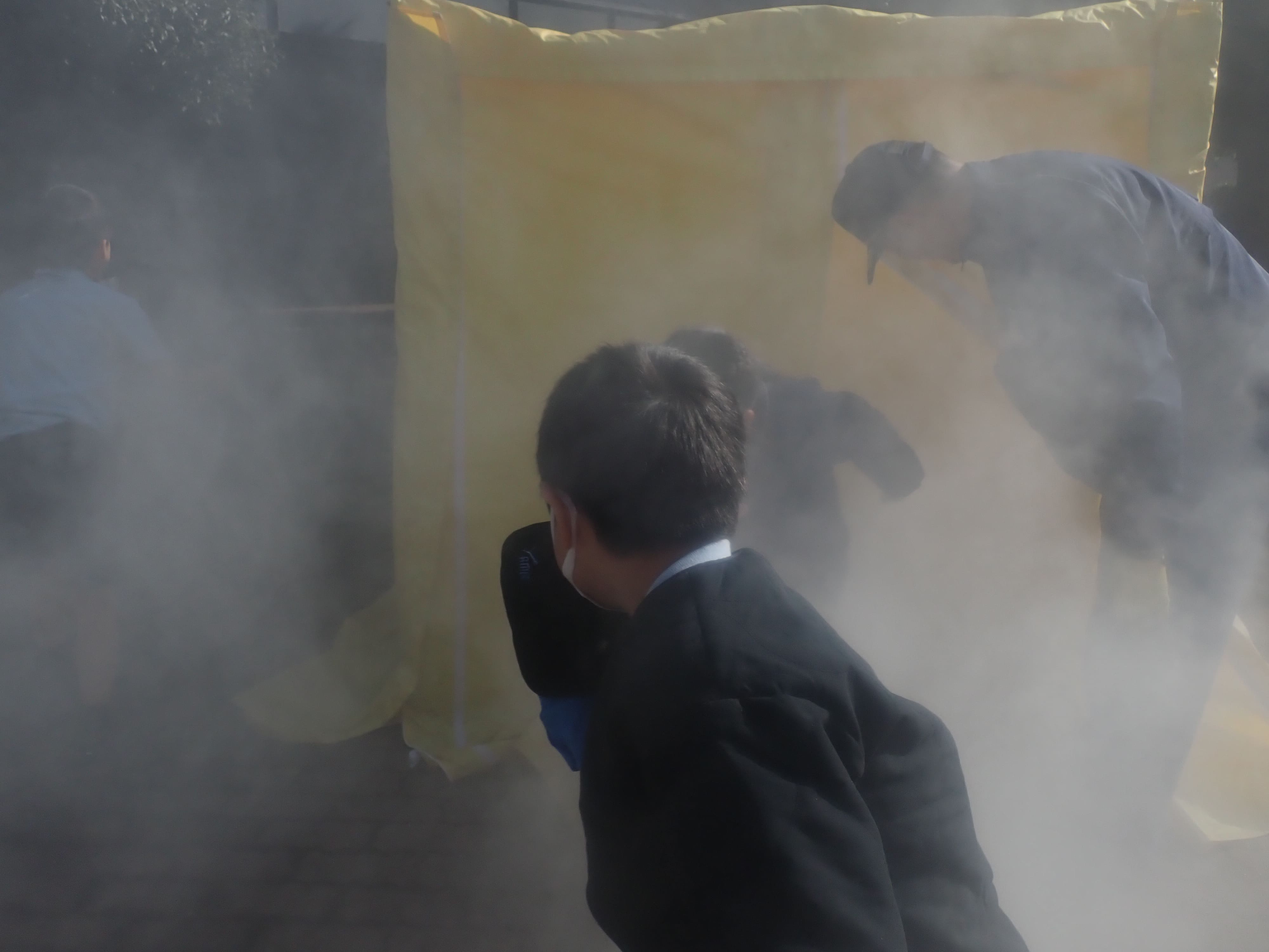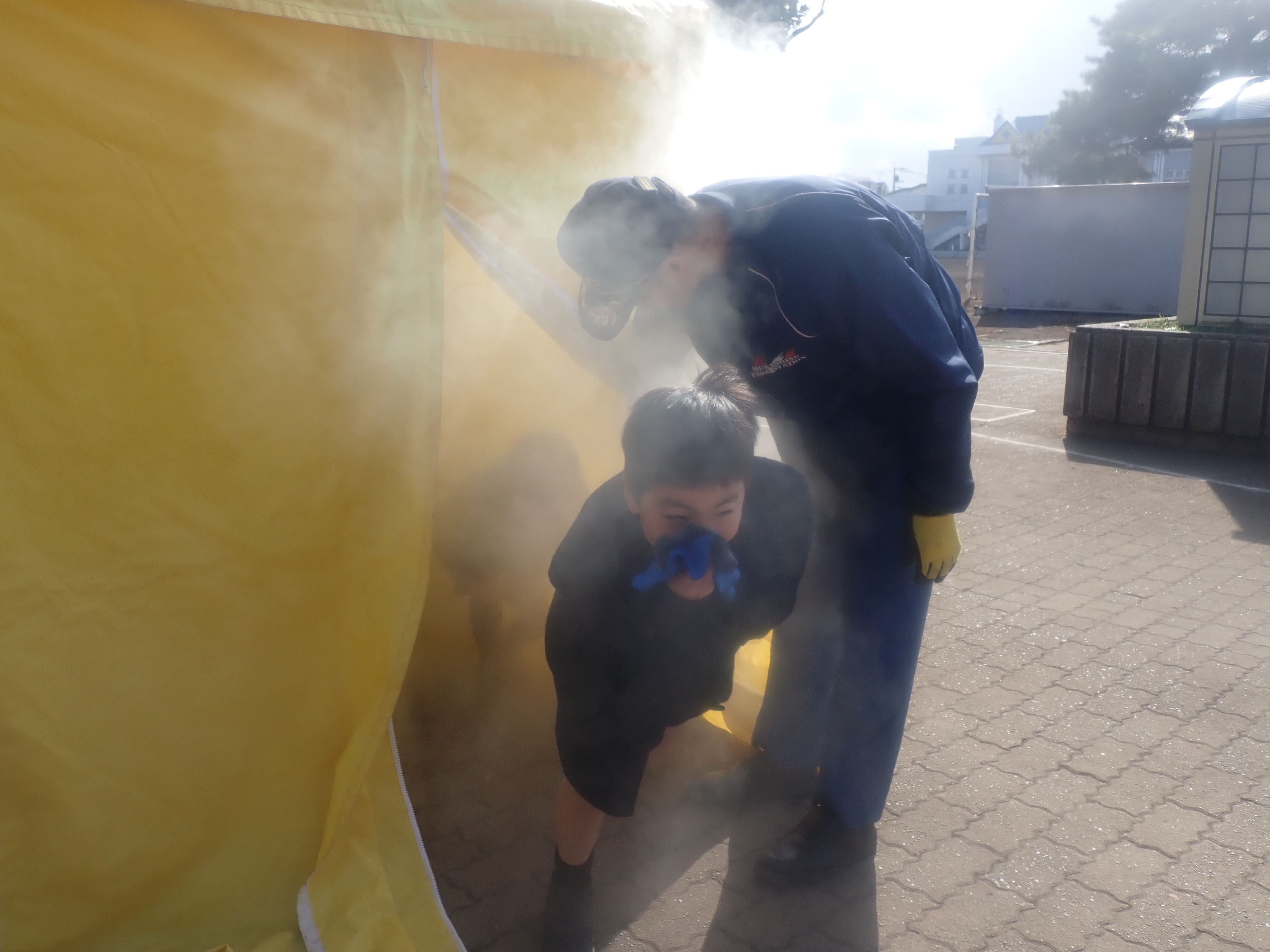 けむりハウスを通った児童たちからは、何も見えない、けむりが臭かった、と驚いていました。