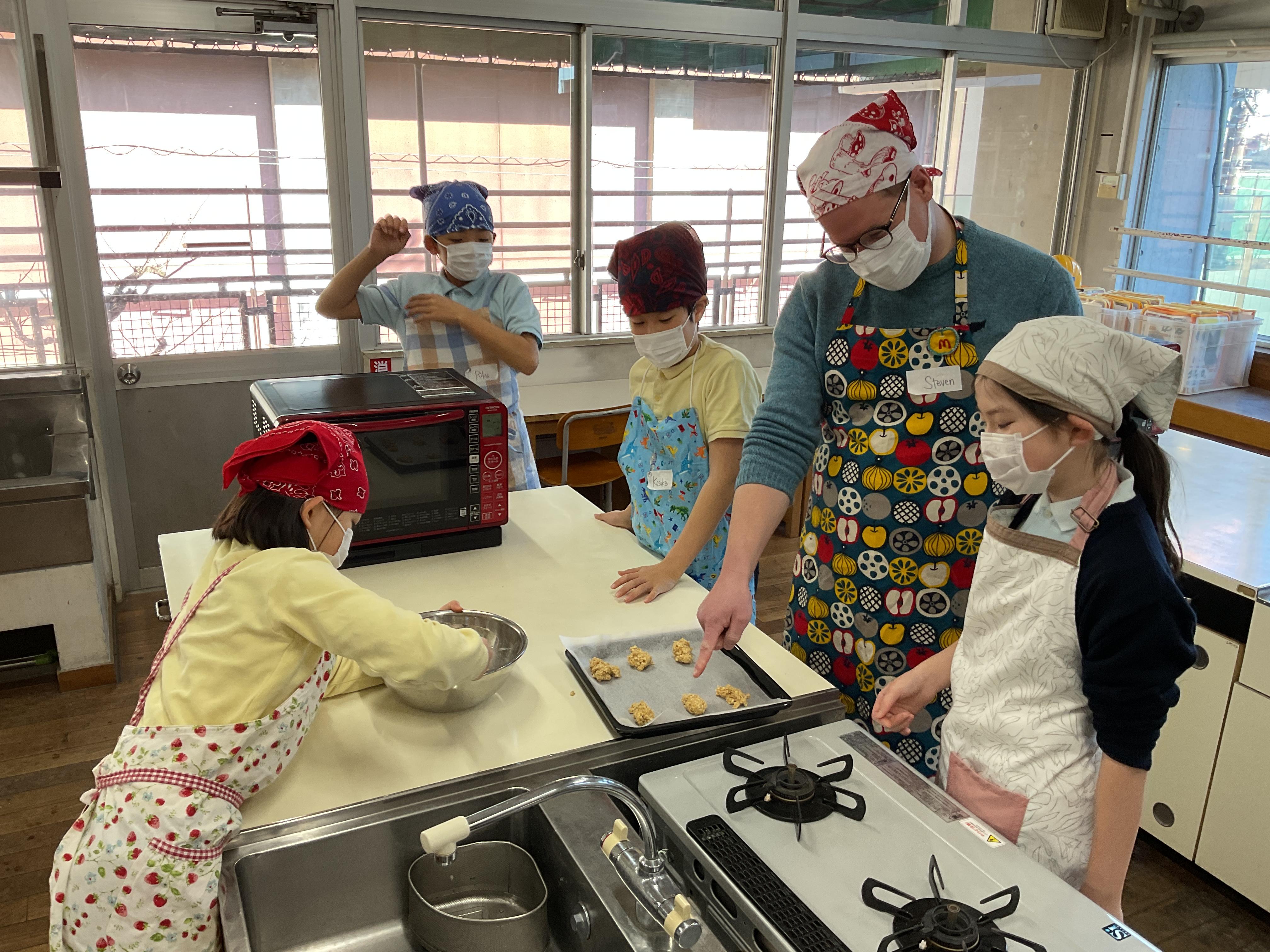 1月12日(月・祝)に、5年生希望者を対象に「Let’s Cook! : オーストラリアのお菓子を作ろう!」のワークショップを実施しました。昨年度はパイロットとして少人数で行いましたが、今年度は希望者全員に行うことができました。参加者は午前の部と午後の部、合わせて34名。オーストラリア・パース出身の講師を招き、パースへの留学経験のある成蹊大学の学生2名によるサポートのもと、オーストラリアのお菓子「アンザッククッキ―」を作りました。「アンザッククッキー」とは、オーストラリアの伝統的な焼き菓子です。オートミール、ゴールデンシロップ、小麦粉、バター、砂糖、重曹で作ります。日持ちが良いことから、兵士への贈り物として家族が作ったことが始まりとされています。
