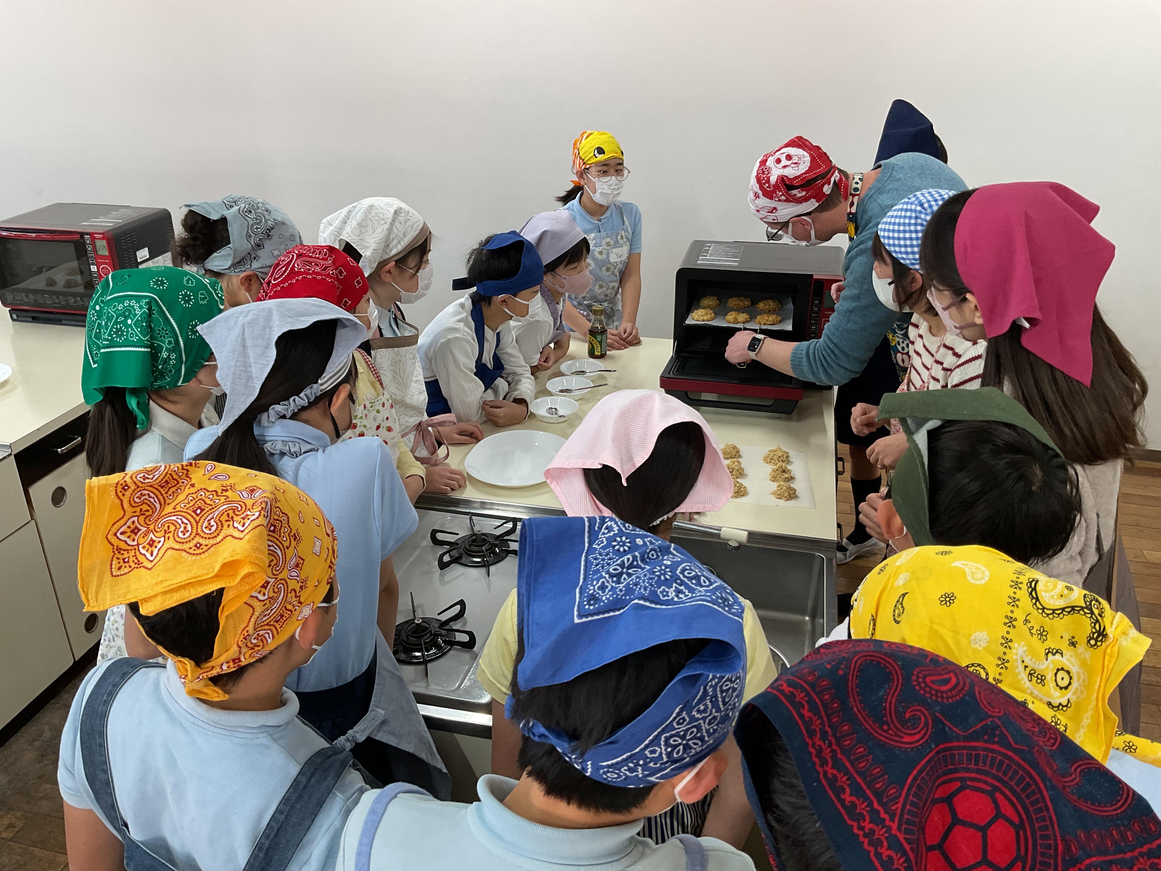 講師による実演を見ながら、子どもたちは一所懸命調理に取り組んでいました。クッキーを焼いている間には、クッキーの焼ける甘い良い香りに包まれながらオーストラリアにまつわるクイズ大会が開かれ、大いに盛り上がりました。完成したクッキーはサクサクで大人気でした。参加した子どもたちからは「色々な材料の単語を知れた」「バターの香りがとても良いクッキーで紅茶との相性が良かった」「驚きの多いクイズで面白かった」「作るのが簡単で美味しかったので家でもまた作りたい」などのコメントが寄せられ、非常に楽しんだことが伝わってきました。