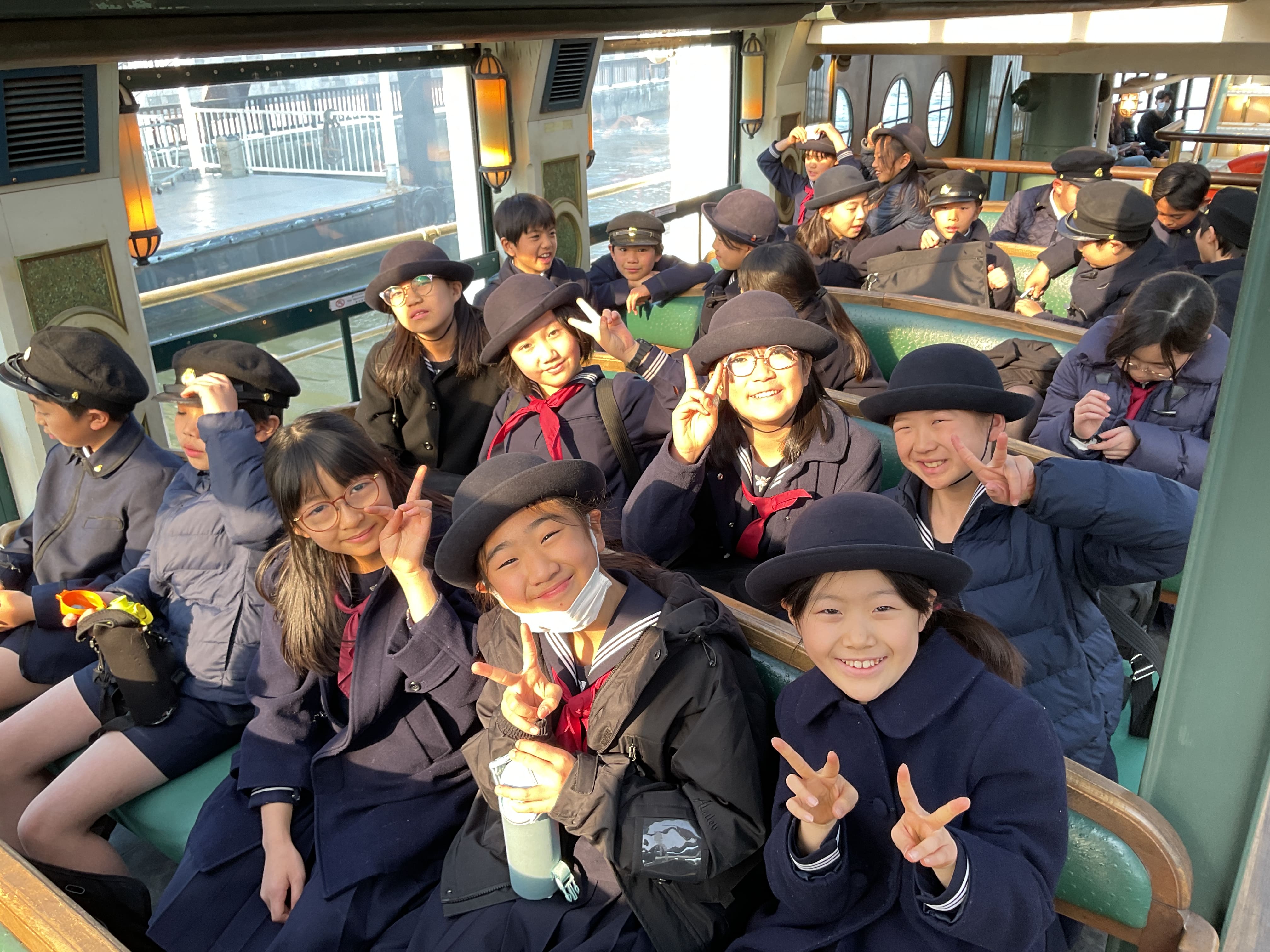 お買い物の後、水上バスに乗船しました。2学期に学習した関東大震災や後藤新平に関わる復興橋をくぐって日の出桟橋へ。下船後は浜松町駅まで歩き解散をしました。