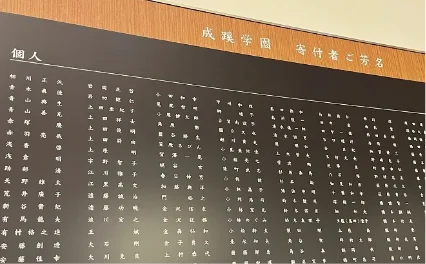 芳名掲出「成蹊教育応援団」へ累計10万円以上ご寄付いただいた皆様のご芳名を刻み、末永く顕彰させていただきます。 |