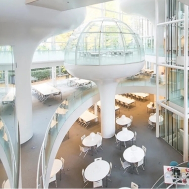 蔵書は100万冊以上。坂茂氏(卒業生)の設計による近未来的なデザインの図書館です。「桃季の会」会員の方は、図書の貸出サービスをご利用いただけます(別途お申込みが必要です)。詳細はこちらよりご確認ください。