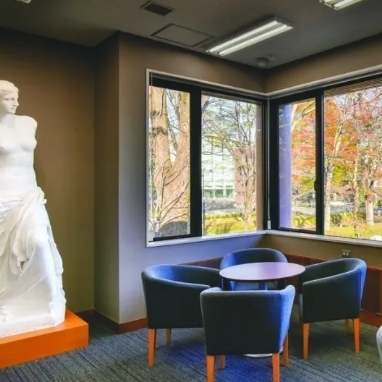 欅ラウンジ(学園史料館2階)キャンパス内の四季折々の風景が楽しめるラウンジです。 ![]() |
