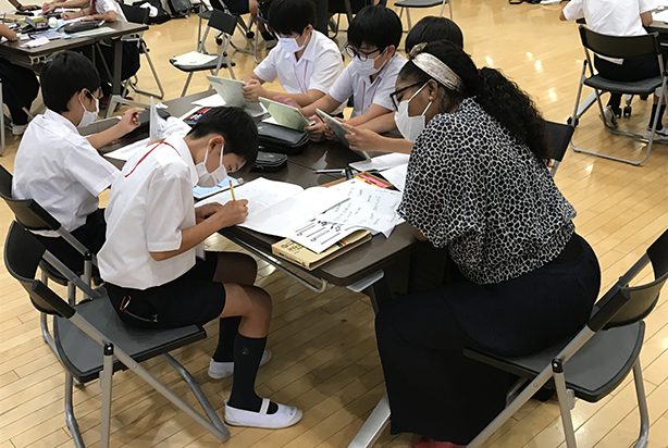 留学生や卒業生から刺激を受けた参加児童は、一日の最後にロイロノートで写真を見せながら自分の夢について英語でプレゼンテーションを行いました。