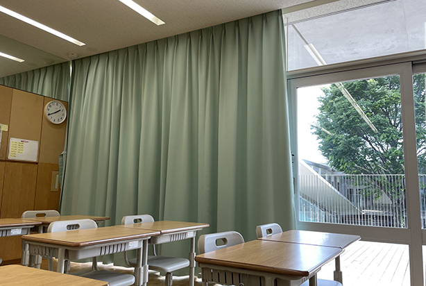 成蹊小学校の全24教室に、プロジェクターや電子黒板を使用する際の暗幕カーテンを設置し、その原資として、皆様から賜った寄付使途「小学校教育振興」への寄付金を活用させていただきました。