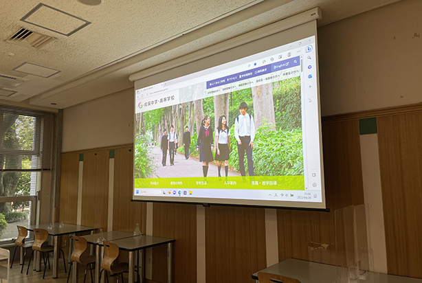 成蹊中学・高等学校にて、高校食堂と中学校生徒ホールにプロジェクターを設置しました。その原資として、皆様から賜った寄付使途「中学・高等学校教育振興」への寄付金を活用させていただきました。