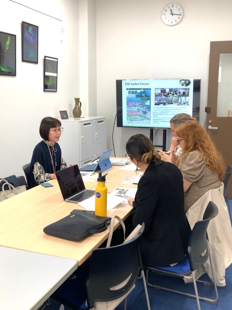 当日は、小学校・中高・大学それぞれの教育活動に加え、学園全体で推進しているESDの具体的な取り組みについてご紹介しました。訪問された皆様には大変興味を持っていただき、活発な質疑応答や意見交換が行われました。