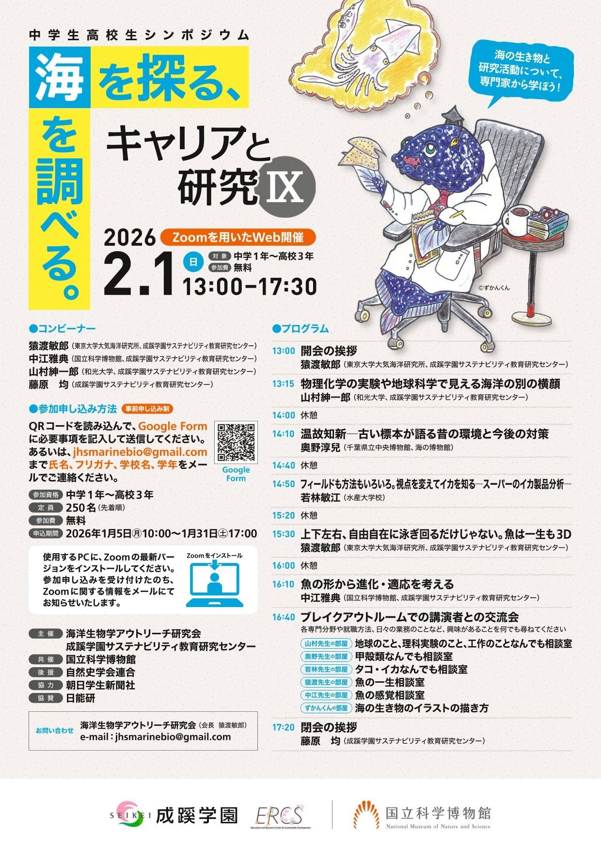 あるいは、jhsmarinebio@gmail.comまで「氏名、フリガナ、学校名、学年」をメールでご連絡ください。