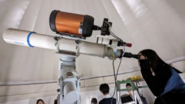 成蹊学園の成蹊中学高等学校の理科棟屋上には天文台があります。直径5mのドームの中心に、自動導入・自動追尾可能な赤道儀が据えられ、その上に15cmの屈折式望遠鏡などが載せられています。望遠鏡につなげたCMOSカメラなどの撮影画像を、ドーム内に設置した大型モニターで見ることができます。カメラを接眼レンズに取り換えて、肉眼で天体を見ることもできます。