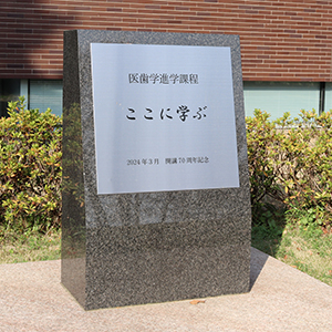 1949年に設置された成蹊大学医歯学進学課程(プレメディカル・コース)の開講70周年を記念し、共に学び青春時代を過ごした理化館(現情報図書館)に足跡(あかし)を遺したいと、医歯学進学課程(プレメ)同窓会有志がつくった記念碑です。