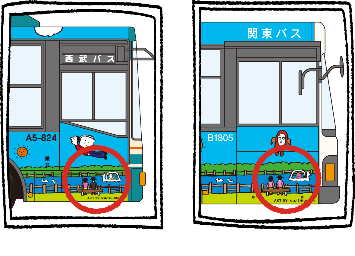 関東バス・西武バスどちらも1台なので、見たらラッキーと思ってもらえたらうれしいです。