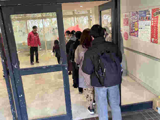 迎えた当日。ご購入者とハグをしたり写真を撮ったり、昼休み中の学生と笑顔でハイタッチを交わしたり…ピーチくんやスタッフの呼び込みで足を運んでくれた来場者も多く、時には列もできるほど盛況の3日間でした✨
