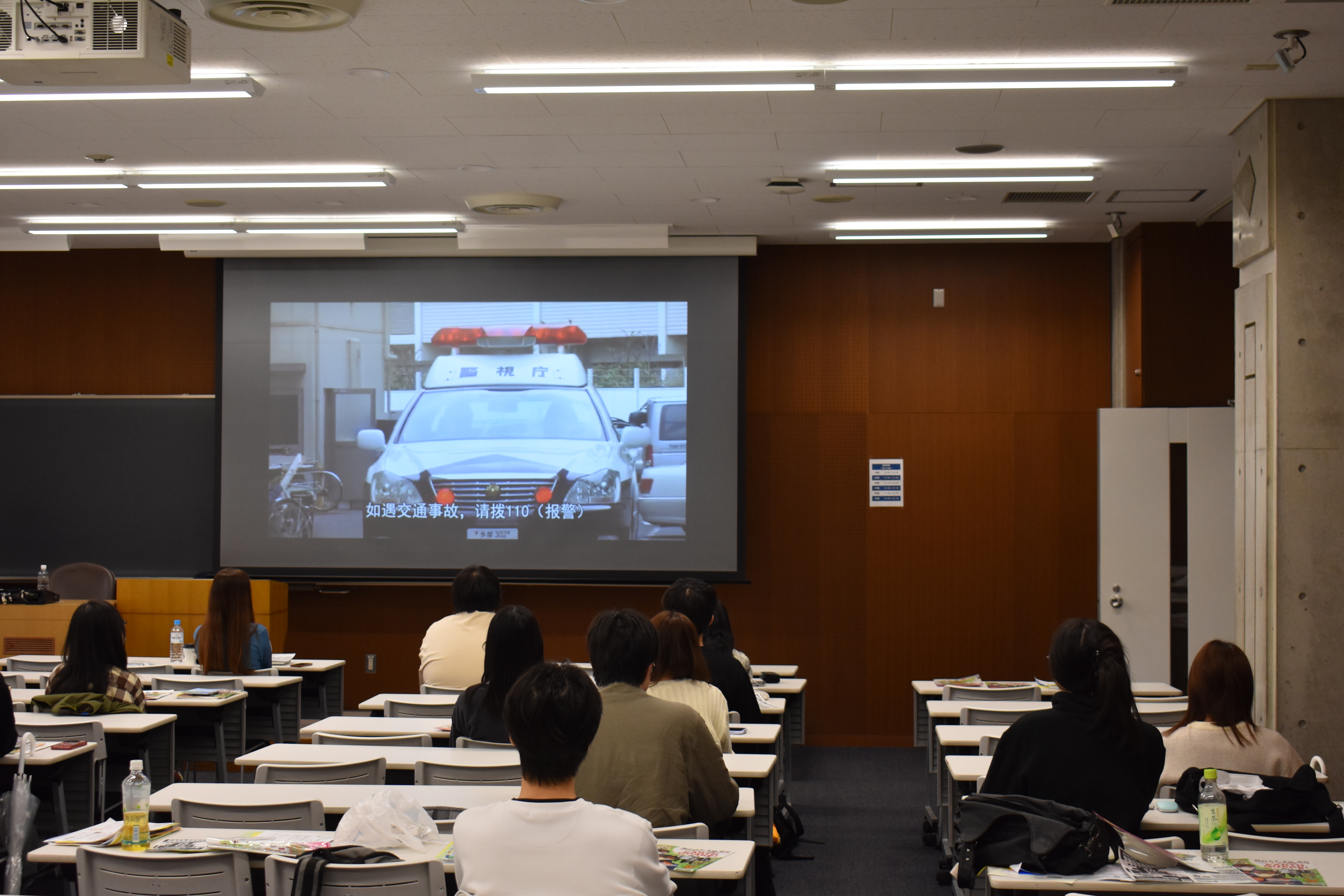 2026年4月7日、私費外国人留学生を対象としたオリエンテーションを行いました。国際課スタッフが在学中の在籍確認、アルバイト上の注意点等を説明した後、東京都と武蔵野警察署にご協力いただき、留学生が安全に、そして安心して日本で生活できるよう、日本在留における注意点などを英語と中国語でお話しいただきました。