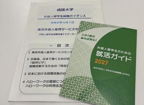 続けて、主に4月に本学へ入学した私費外国人留学生を対象とした就職ガイダンスを開催。キャリア支援センタースタッフから本学の就職支援やセンターの利用案内等を説明した後、東京外国人雇用サービスセンターの講師の方から日本の就職活動の特徴等をお話しいただきました。