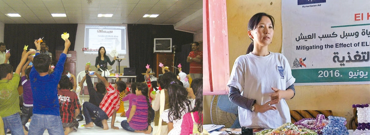 左:在カタール大使館のスタッフとして、日本文化を伝えるワークショップを開催。