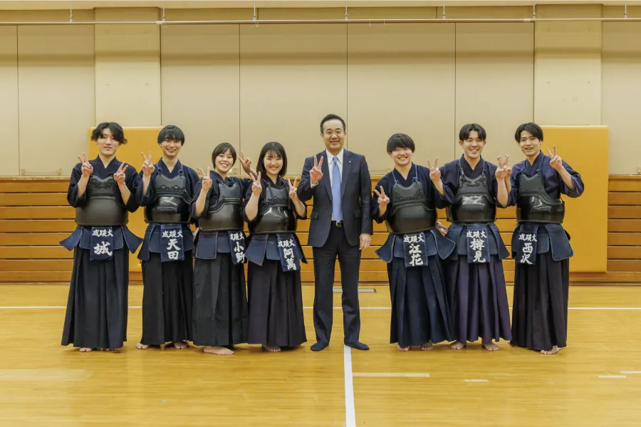 剣道部では主将を務め、3年次には団体戦で全日本大会に出場する機会を勝ち取りました。成蹊にはスポーツ推薦がないのですが、それでも優れた成績を残せたのは部員が一丸となって練習に励んだからこそです。とにかく誰一人欠けることなく全員で強くなることを目指していました。その背景にあったのは「打って反省、打たれて感謝」という剣道の考え方です。この言葉に示されているのは「常に謙虚であること。相手のことを敬うこと」の大切さ。剣道は、勝ってガッツポーズをしたら相手への礼節を欠く行為として判定が無効になる世界。学生時代の私はそこまで謙虚にはなれませんでしたが(笑)、自分さえ良ければいいのではないという考えは今も私の中にしっかりと息づいています。