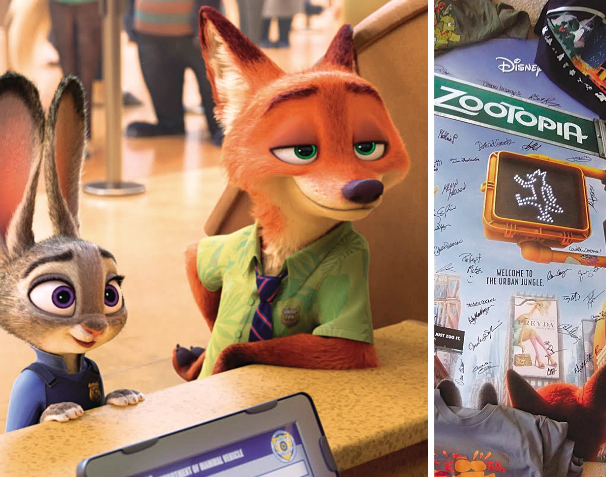 "ベイマックス"ではサンフランソウキョウという街が舞台になっています。その街にあるたくさんの看板の中に、「鈴木○○」「松根○○」など、いくつか私の名前を潜ませました(笑)。機会があったら探してみてください。今春公開された"ズートピア"は、動物たちが人間のように暮らす"楽園"を舞台にした物語です。楽しい友情、冒険物語の下に社会問題も織り込んでいて、大人の方にも観ごたえのある多層的なストーリーづくりをしています。また、本物にこだわった表現にも注目です。従来の動物もののアニメーションは、象の大きさはだいたいこれ位、アリはこれ位と、スケールをごまかしています。"ズートピア"では、なるべく実際に近づけようと、大きさの比率はもちろん、骨格や動きまで忠実に作りました。今までにないチャレンジでかなり新鮮なルックスになっていると思います。次作は日本では2017年に公開予定です。まだあまり明かせませんが(笑)、タイトルは"モアナ(原題)"。南の島に住んでいる女の子と神様のお話しになります。