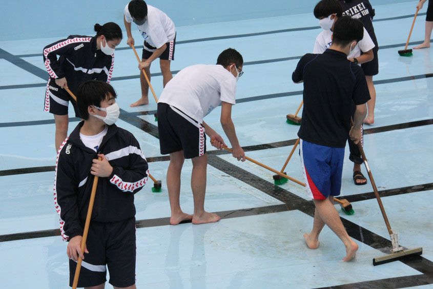 中学水泳部・高校女子水泳部が清掃活動を行いました。