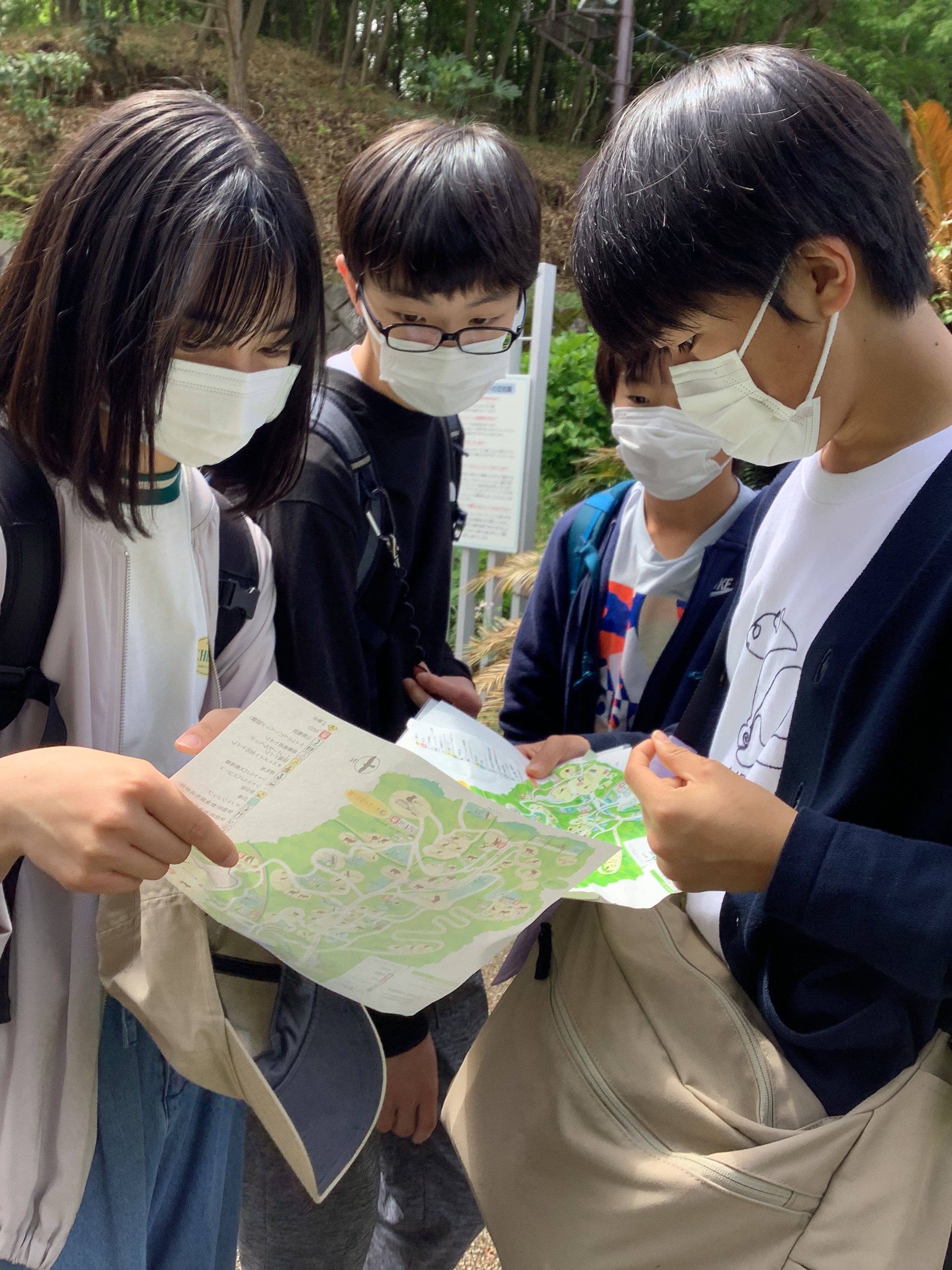 2年生は多摩動物公園に行きました。班ごとに注目する動物を決め、当日はクイズに答えながら、じっくり観察しました。家族で来たことがある生徒も多くいましたが、広い園内を班の友達同士で回ると、違った楽しみ方ができたようです。