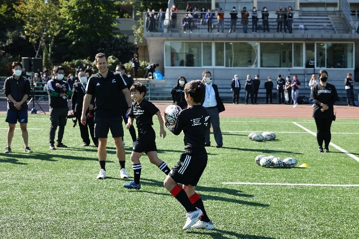 さわやかな秋晴れのもと、世界最高峰のテクニックを体験したラグビー部員たちは終始笑顔で、楽しそうな部員たちの声があちらこちらで聞かれました。