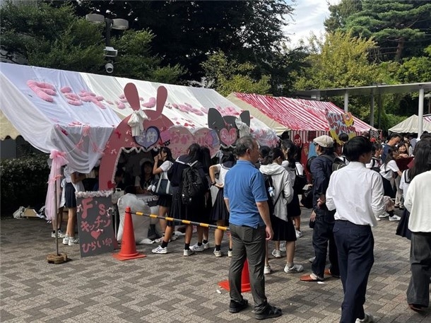 高校3年生は、吉祥寺の店舗とコラボした模擬店のほかに、今年は自分たちで調理するタピオカミルクティー・ホットドッグ・焼き鳥・わたあめなどを販売。どのクラスも趣向を凝らし、大好評でした。