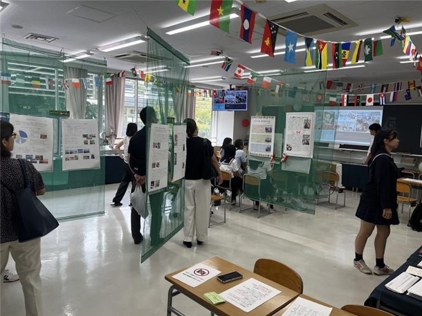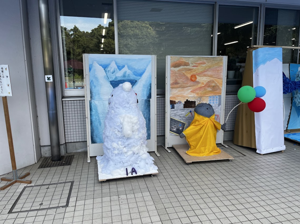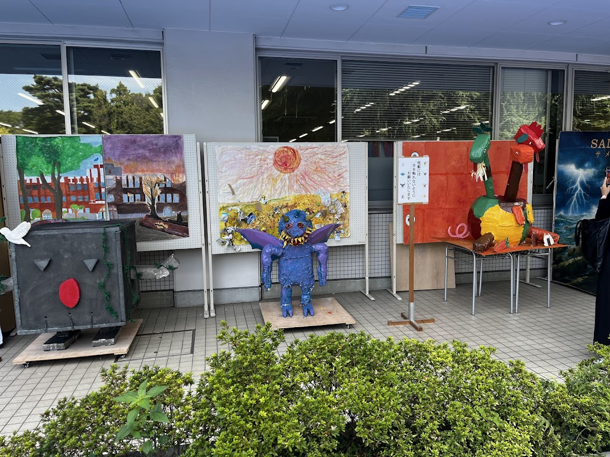 中学1年生は、社会問題をテーマにした"怪獣"を制作。地球温暖化や食品ロスなどをユニークな怪獣の姿で表現し、来場者に向けてプレゼンを行いました。
