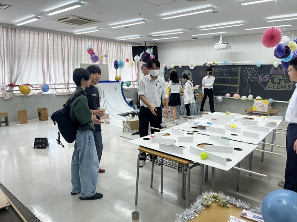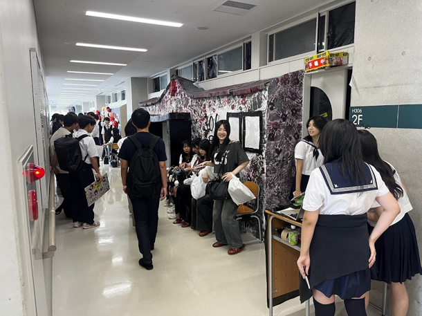 高校2年生は、夏休み前から準備してきた大型の仕掛けを用いたお化け屋敷やジェットコースター、トロッコ型シューティングゲームなど、迫力あるクラス展を展開。どれも長い行列ができるほどの大盛況でした。