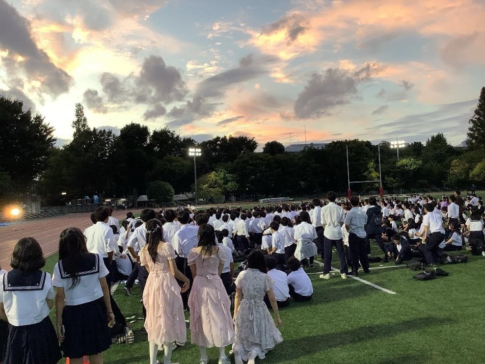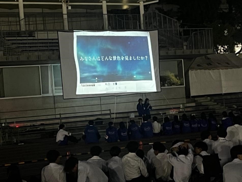 最後はみんなで肩を組み校歌を斉唱。実行委員からの動画サプライズと、夜空に映し出されたオーロラの演出が、感動的な締めくくりとなりました。