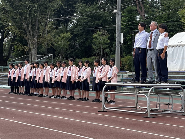 その後の校歌斉唱委員のリードで全員が声を合わせ校歌斉唱し、蹊祭がスタートしました。