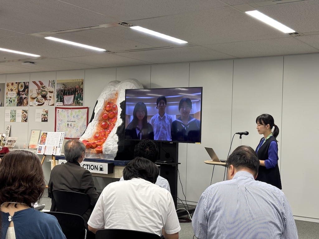 去る10月7日(火)、「おにぎりアクション2025」の記者発表会が開催され、本校から3名のアンバサダー(校内広報大使)が、これまでの取り組みをまとめた動画を発表しました。