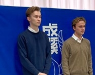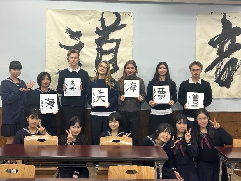 11月5日には、夏にルンステッドを訪問した成蹊生や、成蹊インターナショナル・アライアンスの人たちによるミニ歓迎会が行われ、11月6日の高校放送朝礼ではトビアスさんとアルフレッドさんが挨拶をしました。五人は日本語初級を学ぶ他、通常授業や英語の授業に出席し、放課後には座禅、書道、茶道、着物体験など多くの日本文化を体験しています。