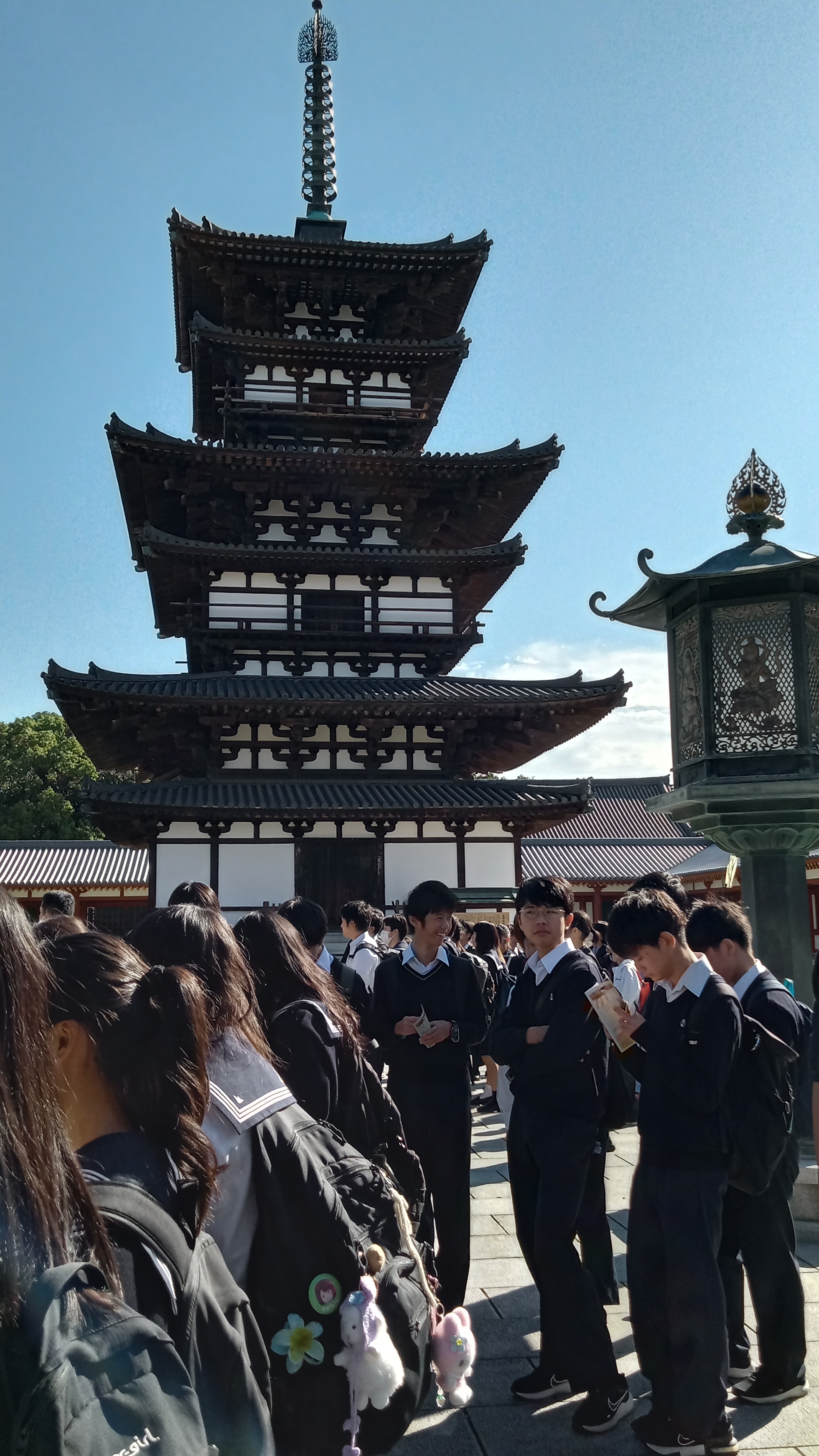 10月22日~26日まで、中学三年生は奈良、京都に修学旅行に行ってきました。奈良、京都にそれぞれ2泊ずつしました。奈良では法隆寺、中宮寺、薬師寺、唐招提寺、浄瑠璃寺を見学し、奈良公園では6人前後での班別行動を半日行いました。奈良から京都への移動は、7種類のコース別で見学・体験を行いました。クラスは関係なく希望するコースに参加し、それぞれのコースでは抹茶、座禅、鬼瓦造り、八つ橋作り、写経、扇子絵付け、友禅染、おばんざいづくりなどの体験を行いました。4日目の京都では、1日行動班で、あらかじめ計画したコースを生徒だけで見学しました。最終日は清水寺、三十三間堂、東寺を回り、新幹線で帰京しました。薬師寺のお坊さんの講話なども体験しました。