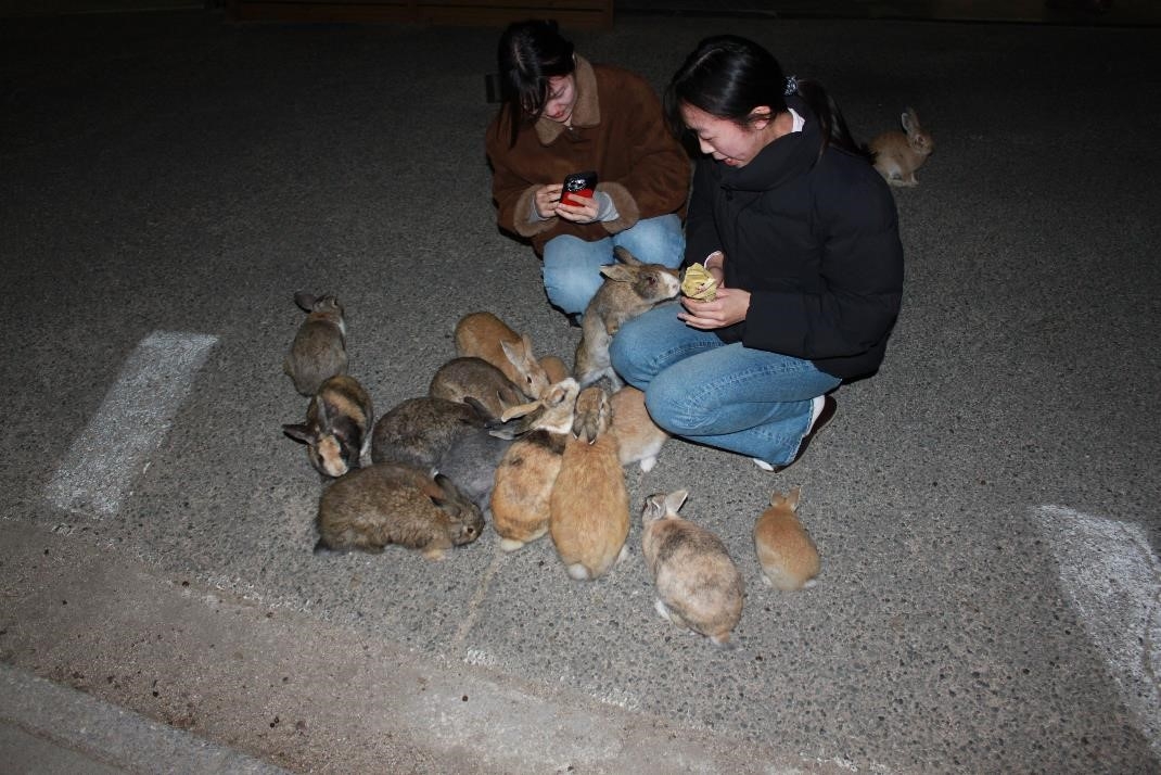 何よりこの旅行でよかったのは、ホテルでした。離島で迎えてくれたのは、満点の星空と500羽を超えるウサギでした。ウサギは夜行性なので、このホテルでは毎晩、毎朝のようにウサギと触れ合うことができます。そして何よりかわいい。みなそれぞれに名前をつけるなど、愛着心を発揮しました。