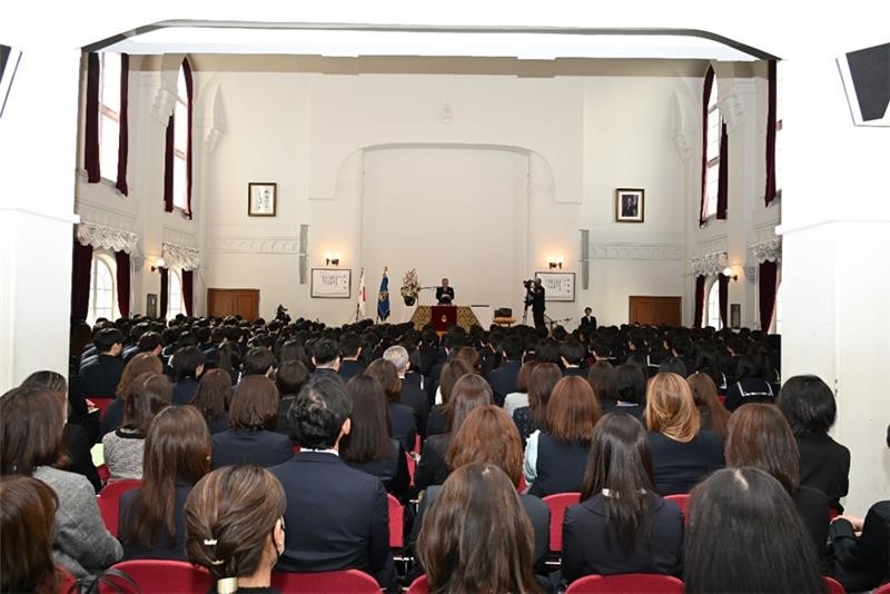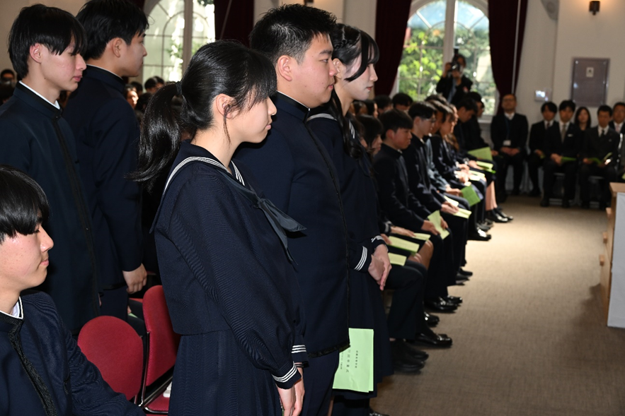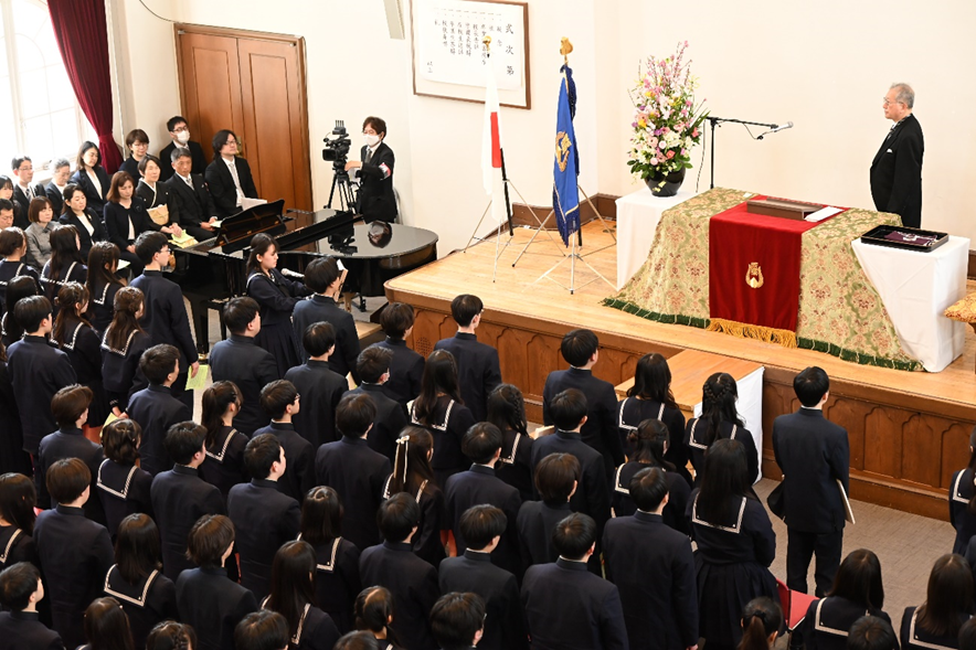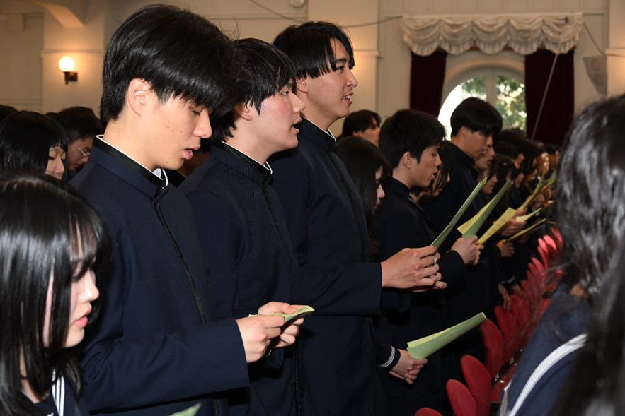 2026年3月7日(土)、第77回成蹊高等学校卒業式が挙行されました。ご来賓の方々、保護者の皆様にもご列席いただき、本館大講堂で行われました。また、別会場ではライブ配信をご視聴いただく席も設けました。