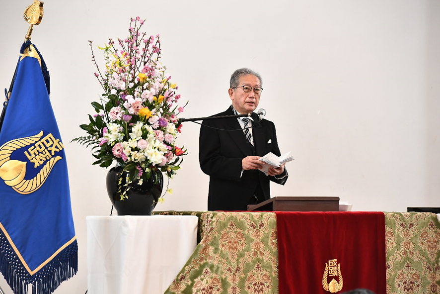 「日ごとに春の気配が感じられ、新たな一歩を踏み出す季節となりました。本日、私たちが卒業式を迎えることができたのは、ご来賓の皆様、先生方、家族、たくさんの方の支援の賜物であり、心より感謝申し上げます。