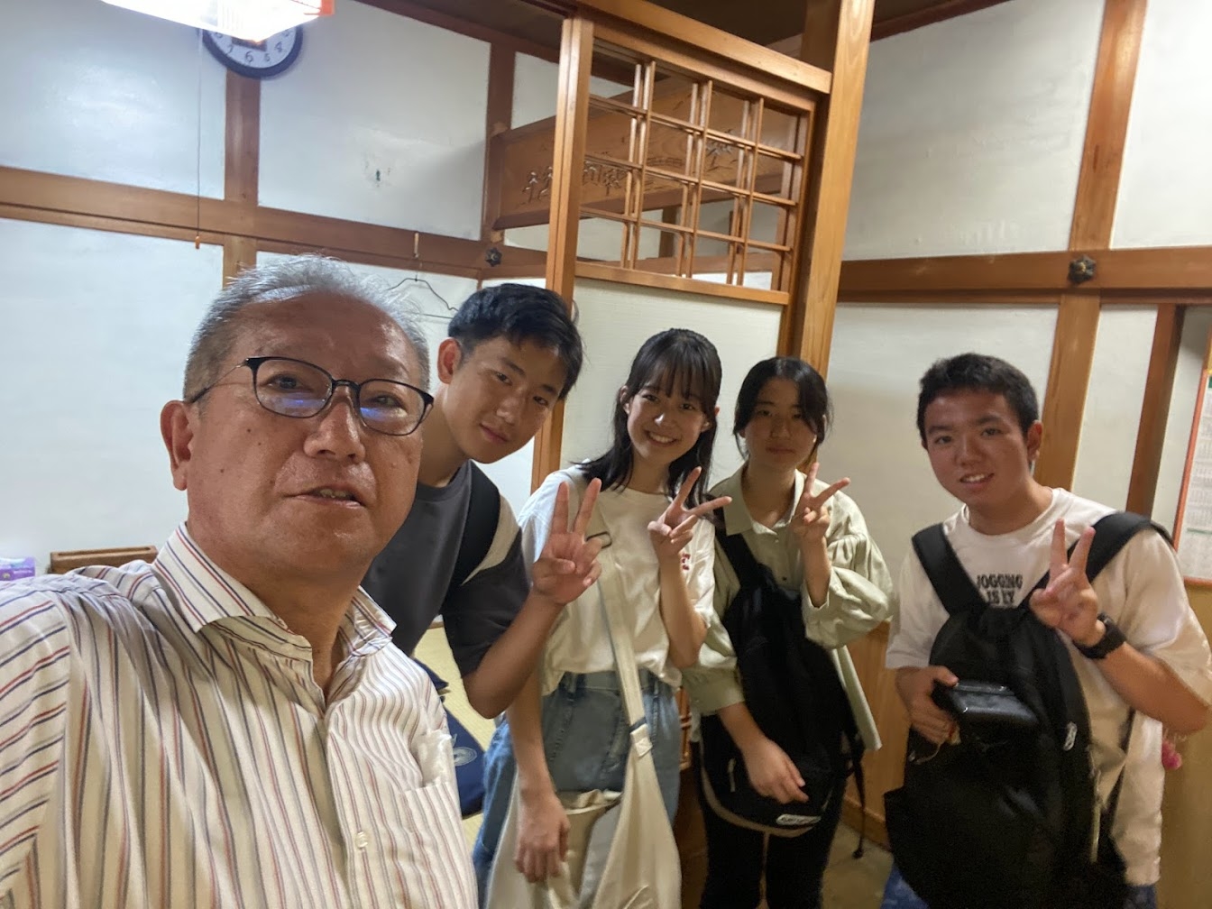 午後は、各班単位での市内フィールド・ワークで、まずは市街地で食事をとりました。やはり、安くて新鮮なものが食べられるお寿司屋さんが人気でした。その後は、班ごとに自分達のテーマに沿った場所へアポを取り、現地取材の始まりです。各チームが医療・教育・観光などをテーマにしているため、病院・市役所・観光協会・JAなどに向かいました。夕方、ホテルに戻ってきてミーティングをして、フィールド・ワークのまとめを行いました。その後、今五島で脚光を浴びている「五島ジン」の製造を始めた五島つばき蒸留所代表取締役の門田クニヒコ様にご講演をして頂きました。大手飲料メーカーを退職されて、何故この五島でクラフト・ジンの蒸留所を始めたのか、スタートアップの魅力を語って貰いました。