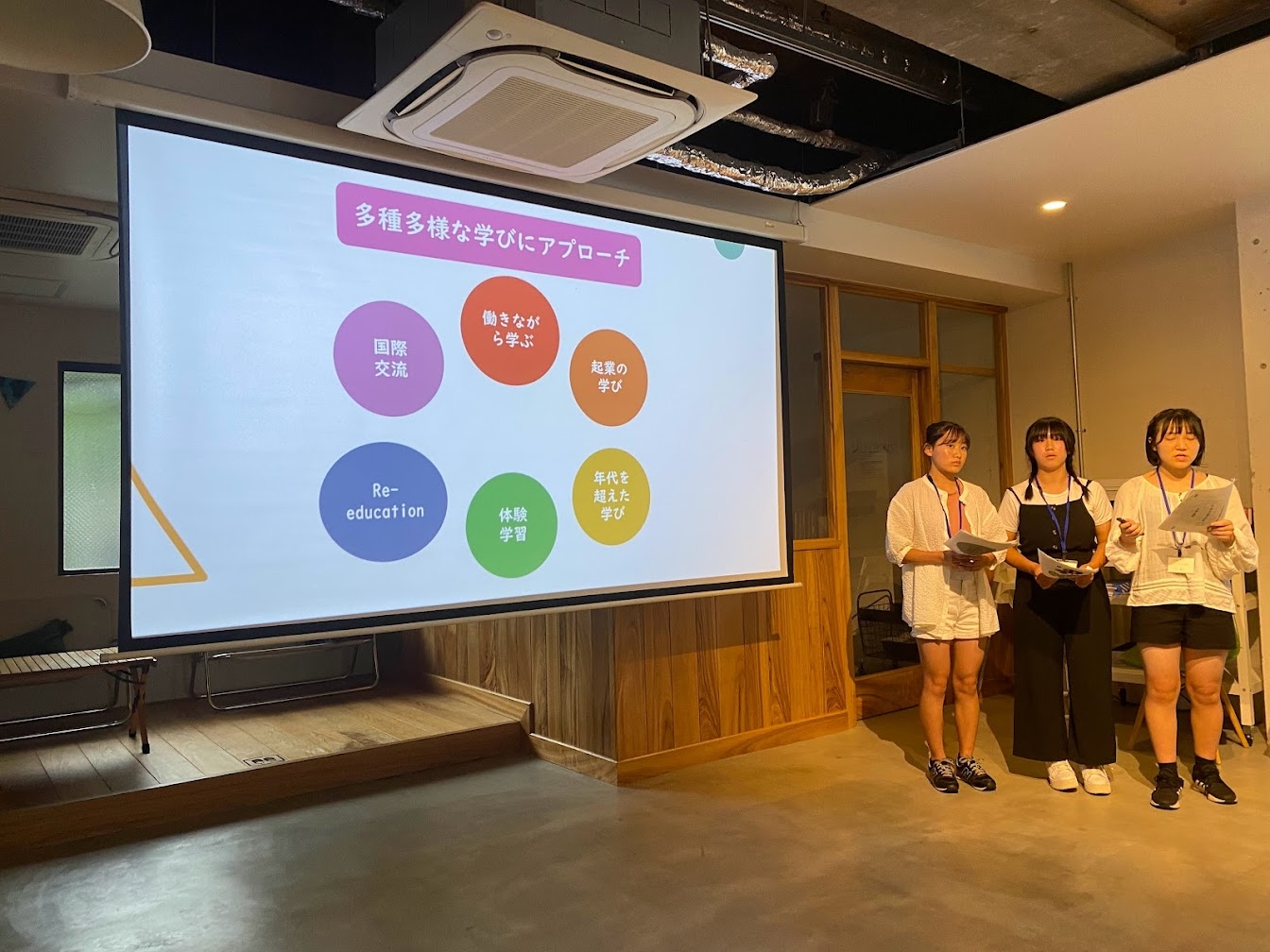 31日(木)、いよいよプレゼンの日です。午前中から、パワーポイントの準備に入り、デモンストレーションも実施しました。そして、15時から始まった6チームは、「特産品である五島牛を低コストで生産できる取組を行い、畜産農家を増やしていく」(食)、「廃校を活用した社会人も学べる新教育システムの構築」(教育)、「五島ファンクラブを作り、特典で『Dream Island GOTO』を満喫させる」(レジャー・スポーツ)、「島内における新たな交通手段として、電動トゥクトゥクを活用する」(運輸・物流)、「水素吸入で、五島の医療を救おう!」(医療)「『GOTO FISH FES』を開催して、『冬こそ五島へ!!』を実現」(観光)といった内容のプレゼンが展開されました。質疑応答では、このために遠くから駆けつけてくれた三井不動産レジデンシャルの櫻井公平様などから、素晴らしい意見が寄せられ、生徒達にとっても充実した一時になりました。この案の中から、一つでも施策として実現できればと期待しています。