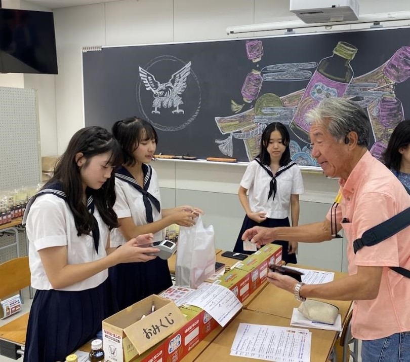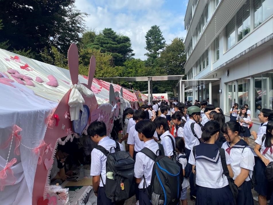 そして、1階のピロティーや中庭では、久しぶりに調理もOKにしたことから、活気のある模擬店が並びました。会場には、ホットドッグに焼き鳥、タピオカにポップコーンと良い匂いが溢れ、食欲をそそります。高校生徒会では、長年続いている東北復興支援のお菓子販売も続けてくれました。隣接する高校食堂も一般開放しており、食券購入に並ぶ長蛇の列は午後遅くまで途切れませんでした。