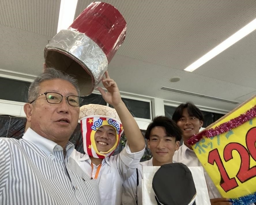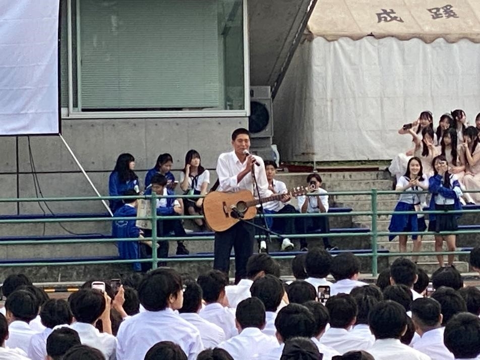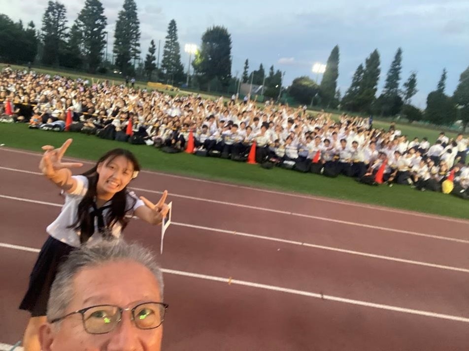 あとは「けやきグランド」に集まっての後夜祭です。楽器演奏や歌、ダンスなどで盛り上がり、生徒対象の宝くじを行い、校長室でランチをする一組だけの当選者は、私が引きました(このような賞品で喜ぶ生徒に感謝です)。その後、実行委員が編集したこの2日間の蹊祭動画を観て、肩を組んで校歌を歌い、青春をかけた2日間が終わりました。蹊祭実行委員の皆さん、ご苦労様でした!!