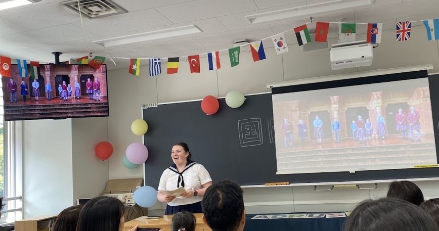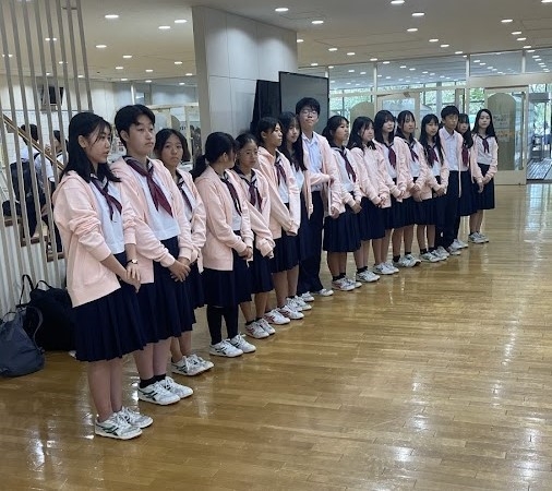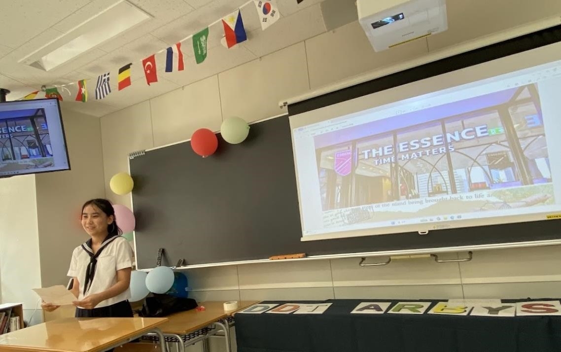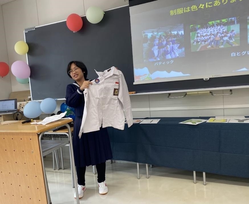 そして、2階です。国際交流の部屋では、現在在籍している3名の留学生によるプレゼンテーションがありました。交換留学生であるエマさん(オーストラリア)からは自分が通っていたセントラファエルズ・カソリックスクールの紹介、カニアさん(インドネシア)は制服が何通りもある自校の紹介、ピンさん(タイ)は自校の紹介とその地域についての話がありました。いずれも和気あいあいの雰囲気の中、活発な質疑応答もなされ、とても素敵なプレゼンの場となりました。