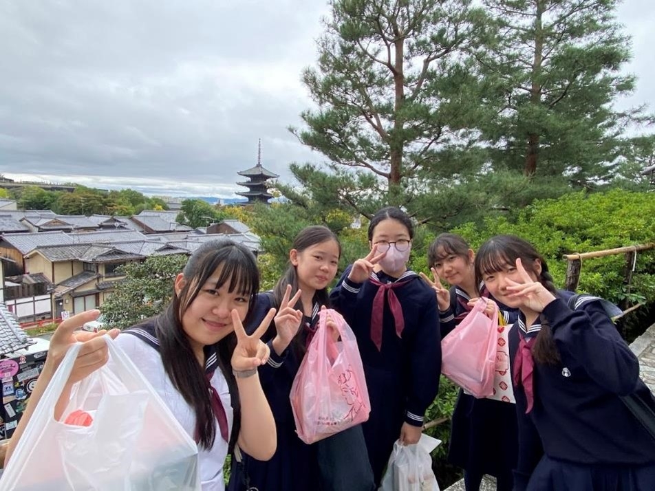 最終5日目は、京都駅近くの東寺と三十三間堂を見学し、最後の清水寺では自由時間を設けています。生徒にとってもお土産購入ができる待ちに待った時間です。八つ橋、京ばあむ、茶の菓など、お土産一杯を手に持った生徒達が帰ってきました。昼食場所で解散式をした際、私の方からこの修学旅行について生徒に問いかけると、4泊5日は長く感じたとの意見は少数でした。生徒達にとっては、4泊5日の中、多くの学びを得た有意義な時間だったと思い、安心しました。5日間、ご苦労様でした!!