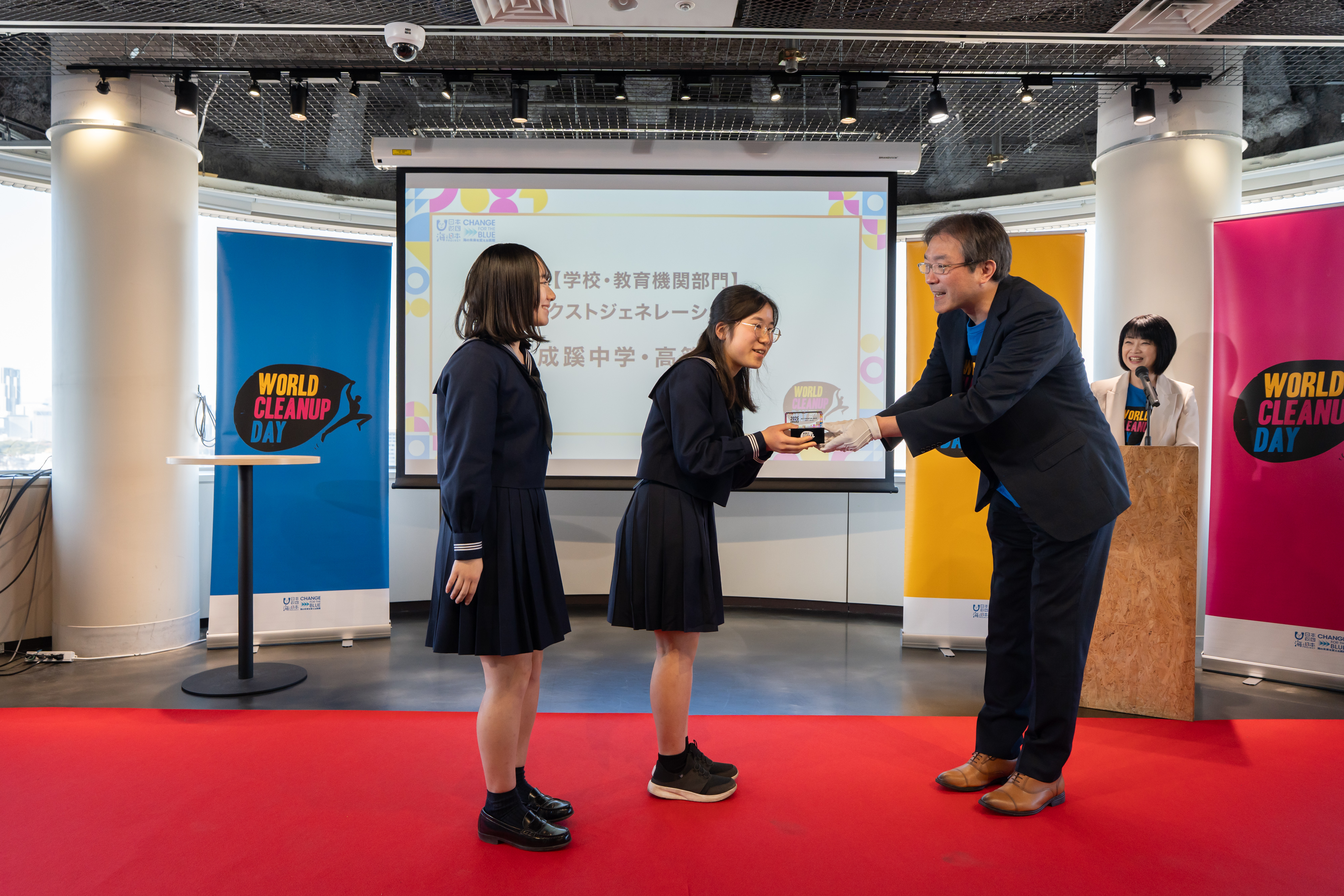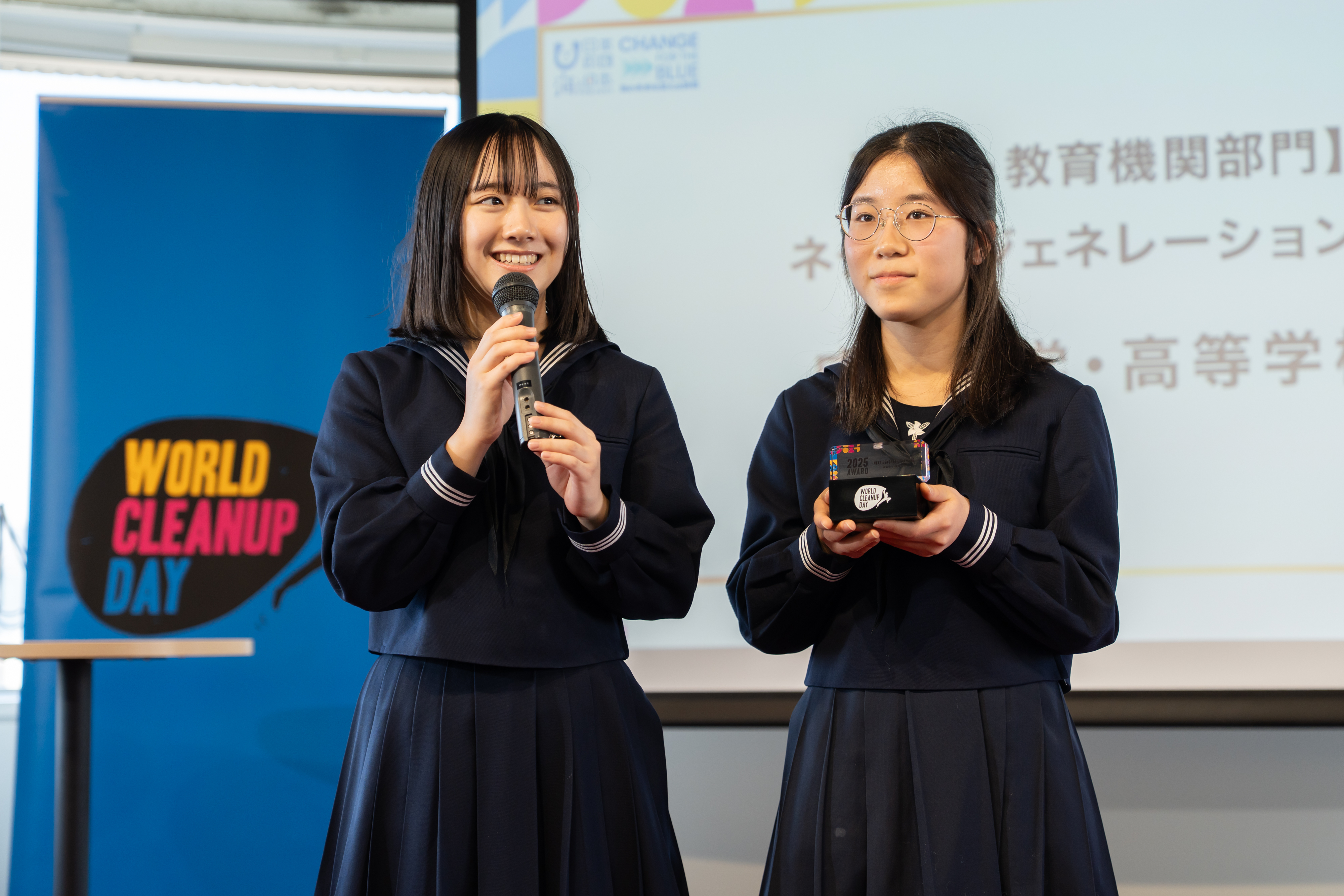 学校内外でゴミ拾いを行うことで生徒と教員の繋がりをより強くでき、また、通学路と学校内を綺麗にすることでいい気持ちになり、ポイ捨てやゴミの分別について考えるきっかけになりました。WORLD CLEANUP DAYに参加し、このような形で私たちの活動が評価され、とても光栄です。記念式典と表彰式に参加して、自分たちの活動を発表し、他企業の活動を知ることで、新たな気づきがありました。そのうえ、ゴミ拾いをする際に共通する課題について話し合うこともできました。それぞれ活動する場所や規模が違っているけれど、同じ意識を持って世界中の人たちが地球を少しでも綺麗にしようと集まって取り組むことはとても素敵なことで、今後も続けていきたいと思いました。