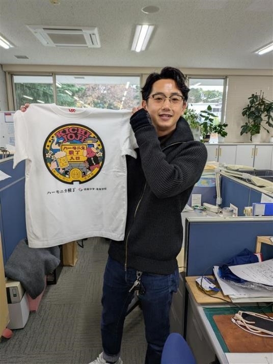 「よこちょ」とは、2年前に本校の探究学習の一環として、中学2年生の3名の女子生徒が考えたハーモニカ横丁のキャラクターです。昨年10月には、ハーモニカ横丁のご協力により、「よこちょ祭」を開催させてもらいました。それを受け、今回のイベント参加に繋がりました。