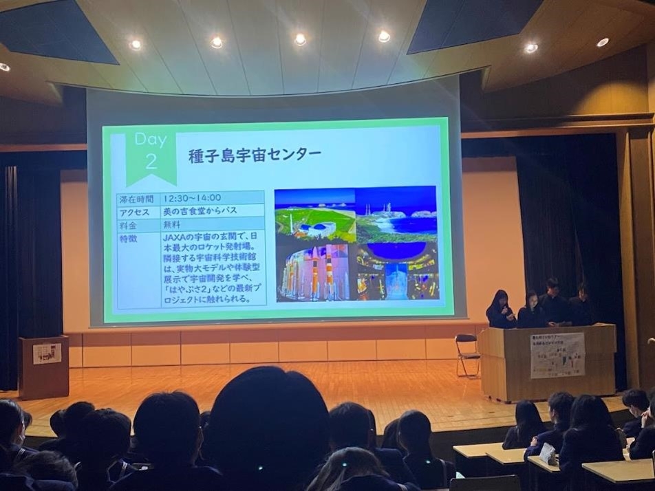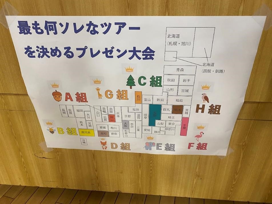 今回は、クラスごとに学習旅行を企画する都道府県を指定してから行っています。まず、クラス内でプレゼン大会を実施し、各クラスの代表を決め、このプレゼン大会に臨みました。そのため、沖縄や北海道といった人気の地域が予選で落ち、東京近県も候補として挙がる珍しい展開となっています。