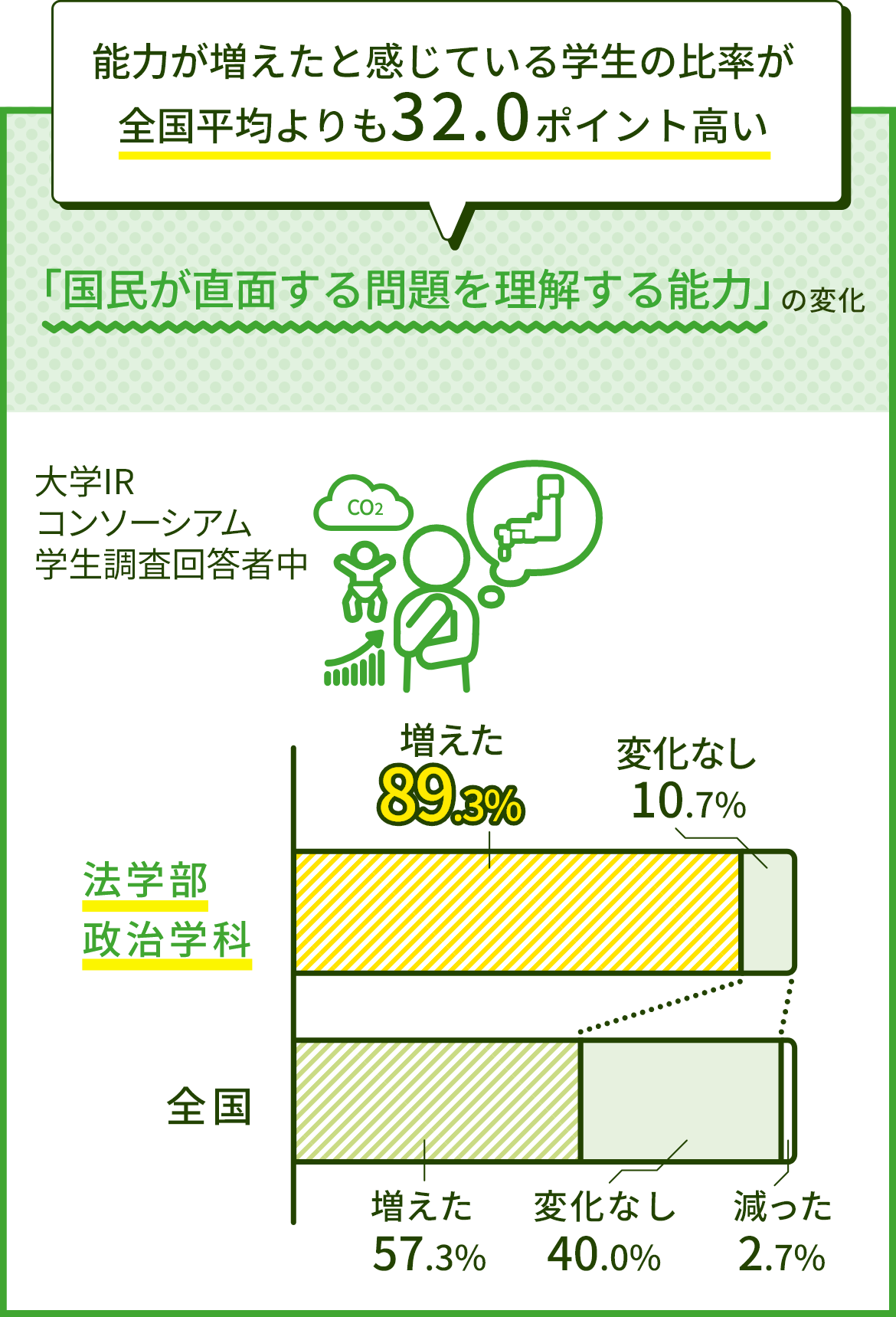 同じキャンパス内にある成蹊高校に通っていたので、大学に入学する前から欅祭(学園祭)などで、成蹊大生の先輩と交流する機会がありました。成蹊の名は、「桃や李(すもも)は何も言わないが、果実を求めて人が集い、その樹木の下に蹊(こみち・小道)ができる」という意味の「桃李不言 下自成蹊」に由来しますが、私が出会った先輩たちも、決して何かを鼻にかけることなく、話しやすい雰囲気をつくって私たちに親身に接してくださいました。私もそのような人で在りたいと思ったことが、成蹊大学を選んだ大きな理由です。政治学科は、「バランス感覚を身につけたい」という思いがあり選びました。ものごとを正しく見るには、偏った考えをもつのではなく、さまざまな観点で検討する必要があります。私たちの生活のあらゆる領域に関わる政治学を学べば、学修を通じ、社会での立場によって異なる多様な視点を知ることができ、理想とする姿に近づけるのではないかと考えました。国内の政治だけでなく、海外の政治について学べることも魅力でした。